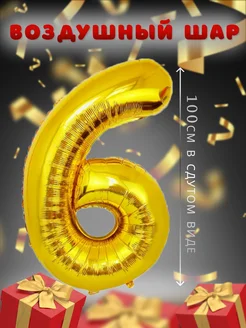 Большой воздушный шар цифра 6 "Золото", 40"