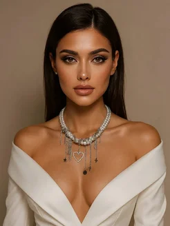 Чокер на шею колье женский бижутерия жемчужное многослойное