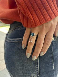Кольцо бижутерия с подвеской кисточкой с голубым камнем