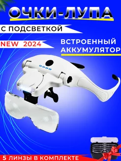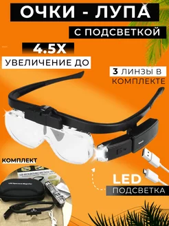 Очки лупа с подсветкой и встроенным аккумулятором 3,5X