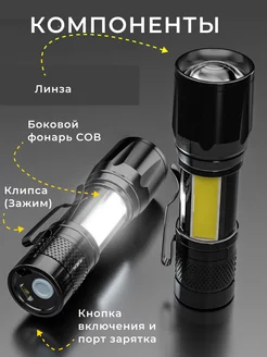 Фонарик светодиодный аккумуляторный ручной с зумом