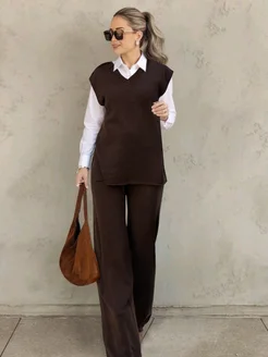 Костюм брючный вязаный с жилетом