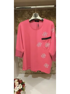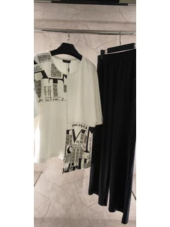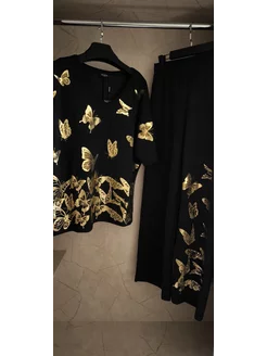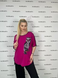 Cпортивный костюм двойка больших размеров со стразами на мол
