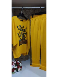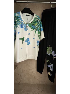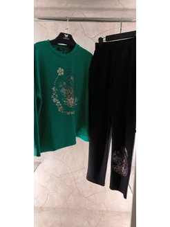 Cпортивный костюм двойка больших размеров со стразами нарядн