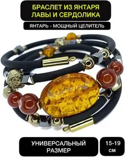 Браслет с янтарем и сердоликом из натуральных камней