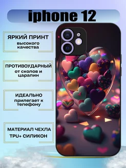 Чехол силиконовый на iPhone 12 с принтом сердечки