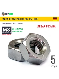 Гайка М8 с левой резьбой нерж. А2 DIN 934 LINKS