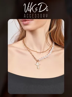 Ожерелье на шею колье и бижутерия и жемчуг и кулон и крест