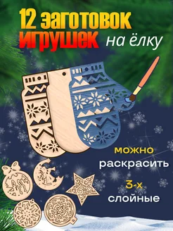 Деревянные заготовки елочных игрушек 12 шт