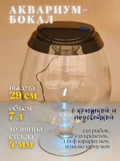 Аквариум бокал с крышкой и подсветкой, 7 литров