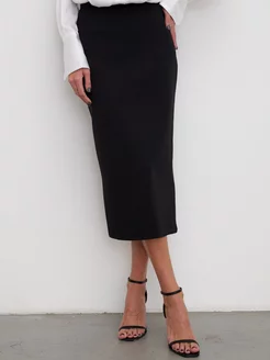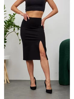 Юбка-карандаш миди с разрезом, высокая посадка повседневная