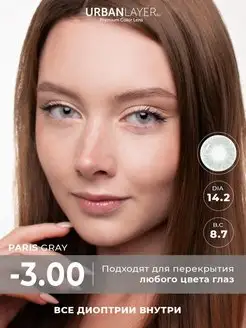 Цветные линзы с диоптриями Paris Gray -3.0, 2шт