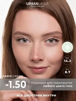 Цветные линзы с диоптриями Paris Green -1.5, 2шт