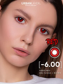Цветные линзы с диоптриями Tokyo Red -6.0, 2шт