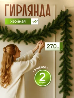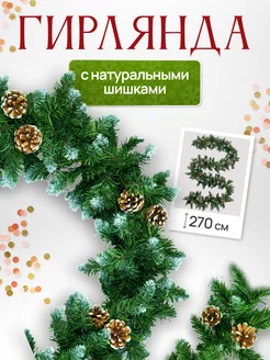 Еловая хвойная гирлянда ветвь с натуральными шишками 270 см