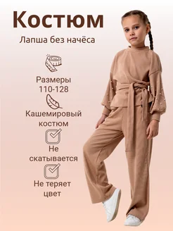 Костюм для детей оверсайз праздничный двойка лапша бежевый