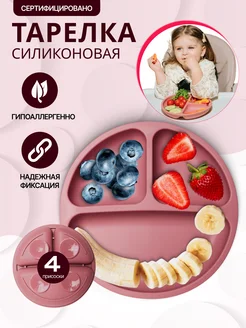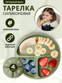 Силиконовая тарелка детская 2 в 1 + ложка и вилка