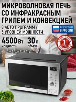 Микроволновая печь 30л, микроволновка с грилем 4500 Вт