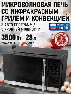 Микроволновая печь 28л, микроволновка с грилем, 3500 Вт