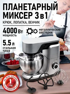 Миксер кухонный планетарный тестомес 3 в 1, 5,5 л