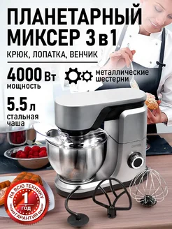 Миксер кухонный планетарный тестомес 3 в 1 с таймером, 5,5 л