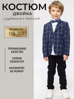 Костюм школьный пиджачная двойка с рубашкой и бабочкой