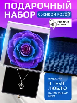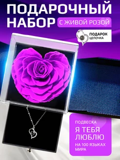 Подарочный набор для женщин с живой розой и кулоном
