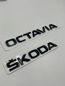 Надпись наклейка на багажник Skoda + Octavia Black Антихром