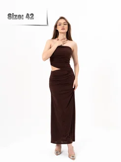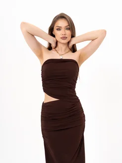 Коричневое платье с открытыми плечами обтягивающие