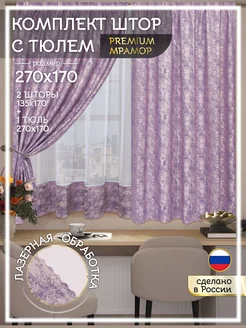 Шторы на кухню короткие с тюлем мрамор 270х170 см