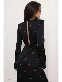 Длинное платье в горошек атласное вечернее нарядное летнее