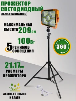 Прожектор аккумуляторный 100Вт лампа переносная на штативе