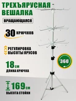 Вращающаяся напольная вешалка с крючками, высота 160 см
