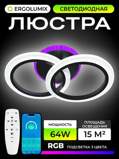 Люстра потолочная светодиодная с пультом и RGB-подсветкой