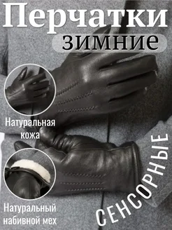 Перчатки кожаные зимние с мехом сенсорные