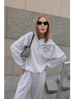 Свитшот на молнии оверсайз с начесом полузамок