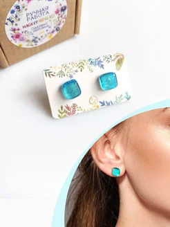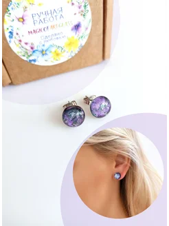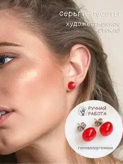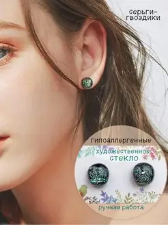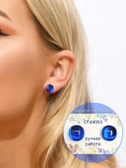 Серьги-гвоздики пусеты из ювелирного стекла