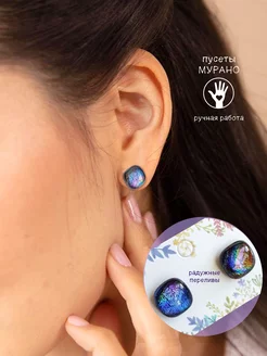 Серьги-гвоздики пуссеты муранское стекло бижутерия