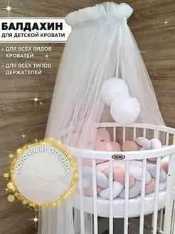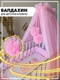 Балдахин на детскую кроватку из еврофатина с помпонами