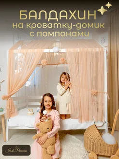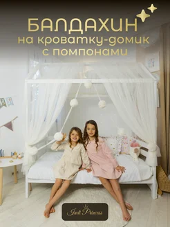 Балдахин с помпонами на кроватку-домик 160 180