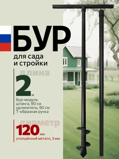 Бур садовый ручной для земли для столбов D120мм