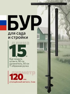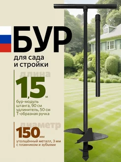 Бур садовый ручной для земли для столбов 150мм
