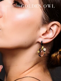Серьги винтажные этнические с кабошоном