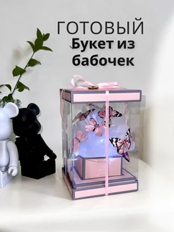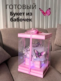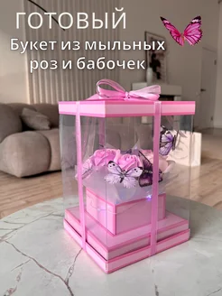 Готовый светящийся букет из мыльных роз и бабочек в коробке