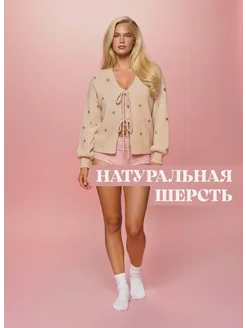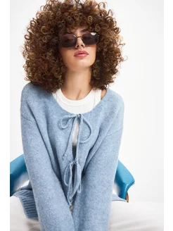Кардиган на завязках с бантиками вязаный шерстяной оверсайз