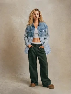 Куртка демисезонная комбинированная удлиненная джинсовка