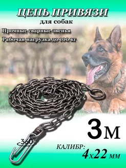 Цепь для привязи собак, 3 м, калибр 4 х 22 мм, черная