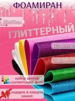 Фоамиран глиттерный с блёстками 10шт. 2мм. для творчества