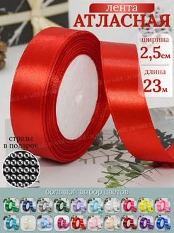 Лента атласная красная упаковочная для рукоделия 25 мм*27 м