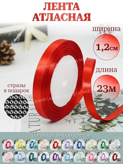 Лента атласная красная упаковочная для рукоделия 25 мм*23 м